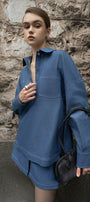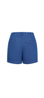 This skort features a high-waisted design with two-layer construction, combining the look of a skirt with the comfort and practicality of shorts. Crafted from durable denim, it offers a flattering silhouette and functional patch pockets, making it a versatile piece for both casual and stylish outfits.