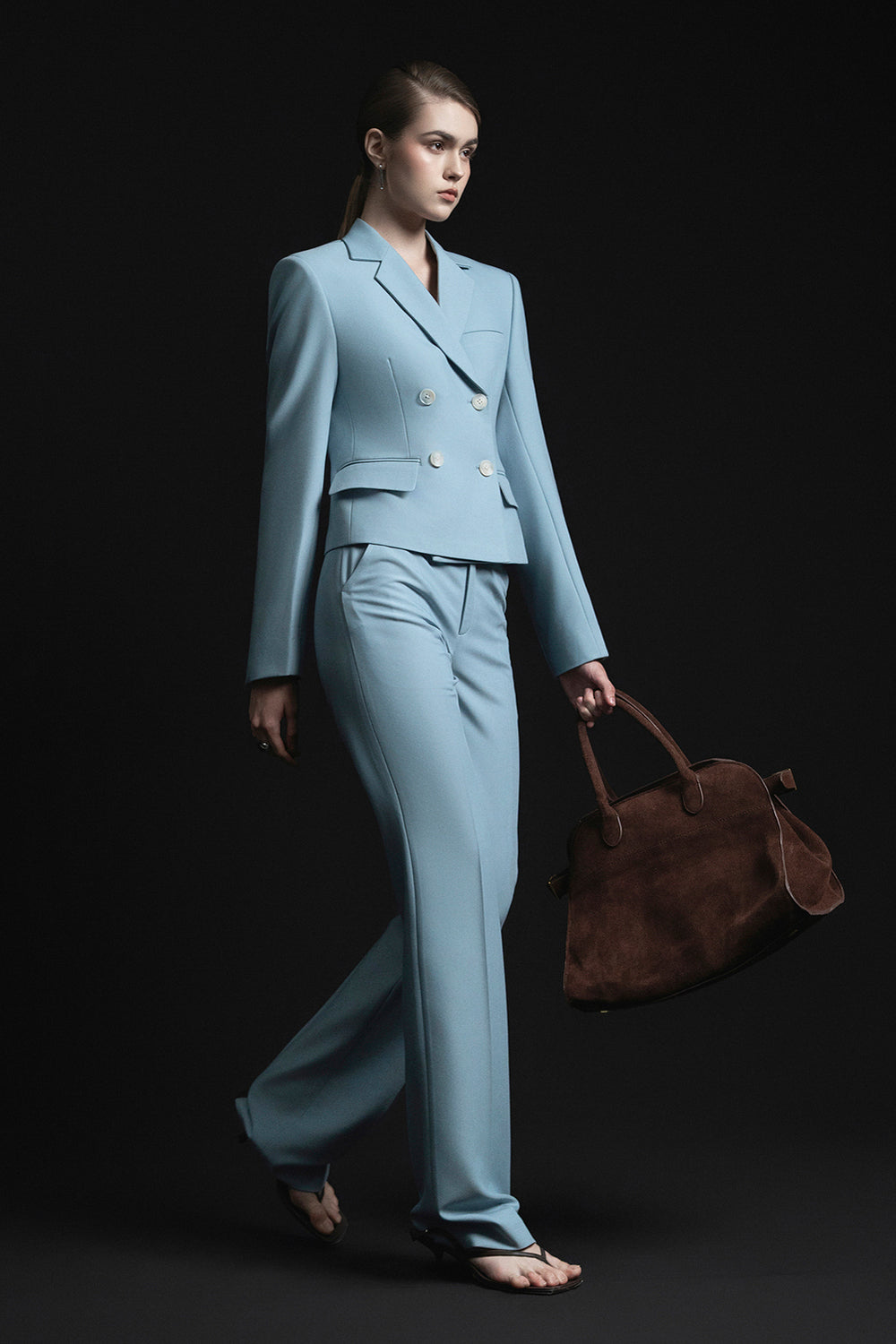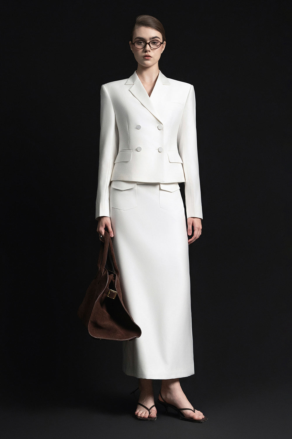 Special Features: Double-breasted, Notch lapel, Dart lines, Symmetric flap pockets