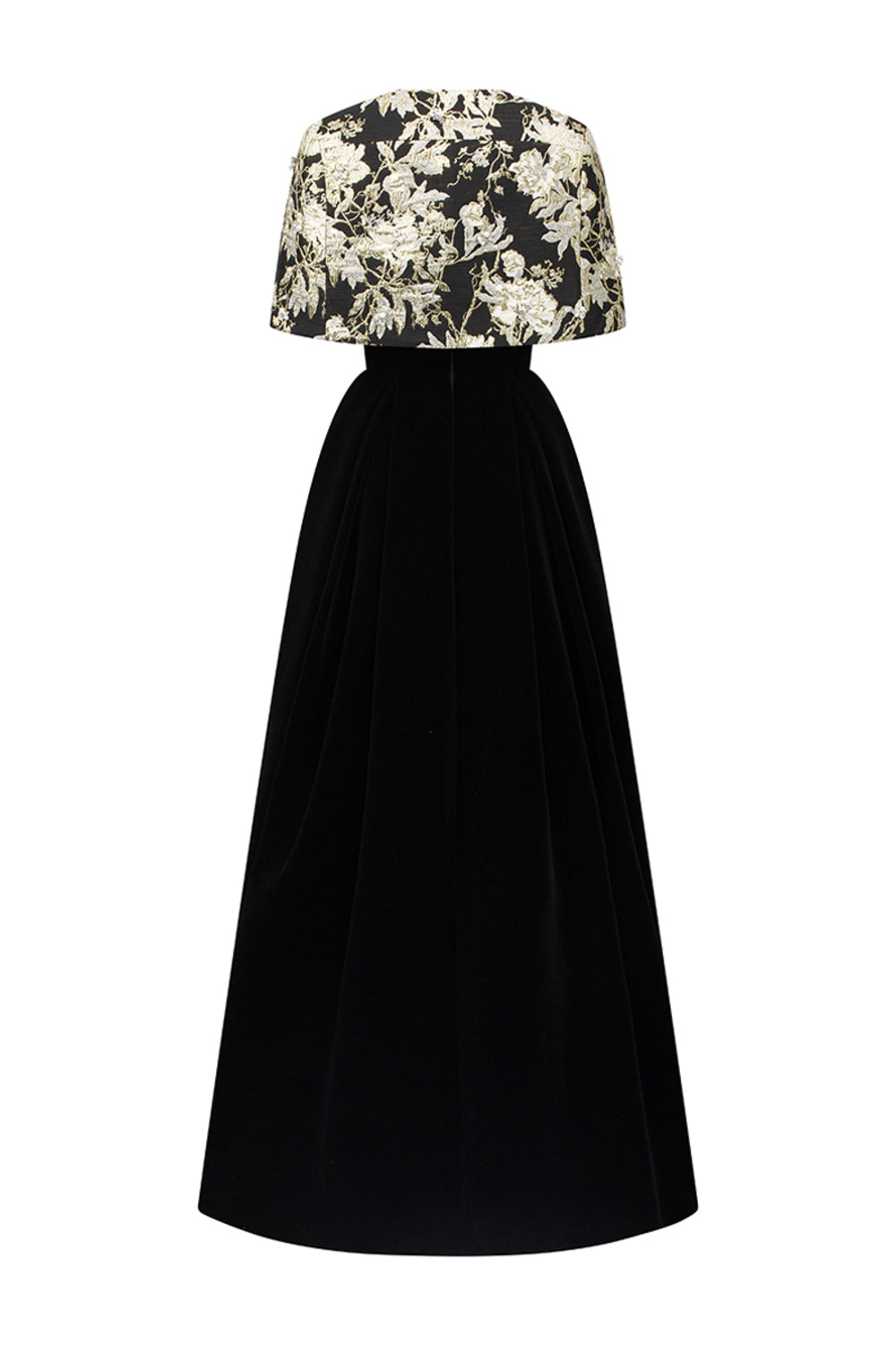 Averi Ball Gown Cape Shoulder Velvet Floor Length Set