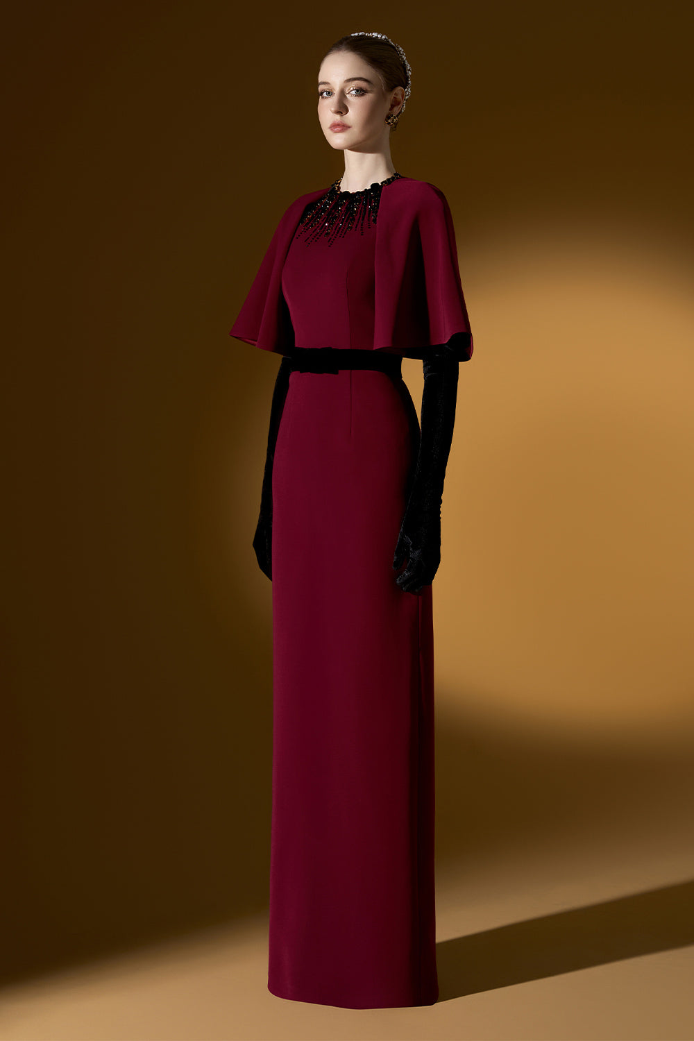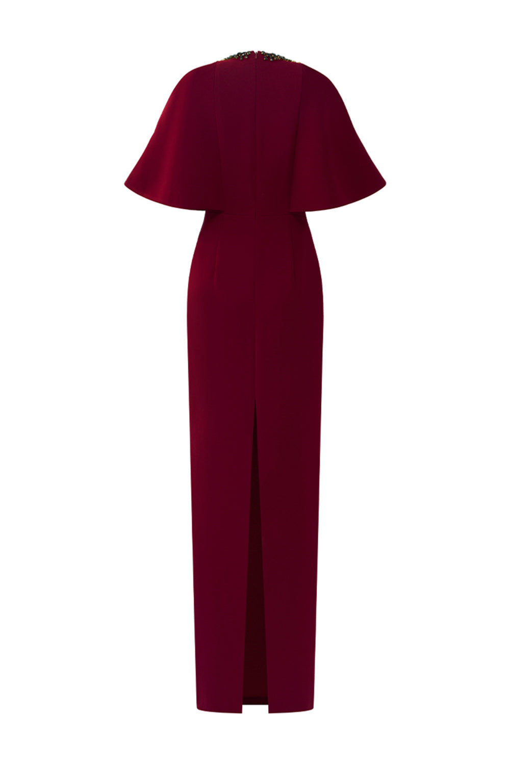 Ember Sheath Butterfly Sleeved Crepe Floor Length Dress