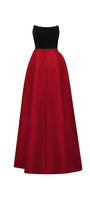 Estelle Asymmetric Curved Neck Taffeta Floor Length Dress