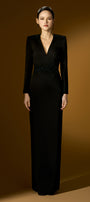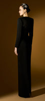 Juliette Sheath Plunge Neck Crepe Floor Length Dress