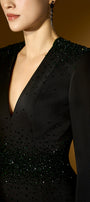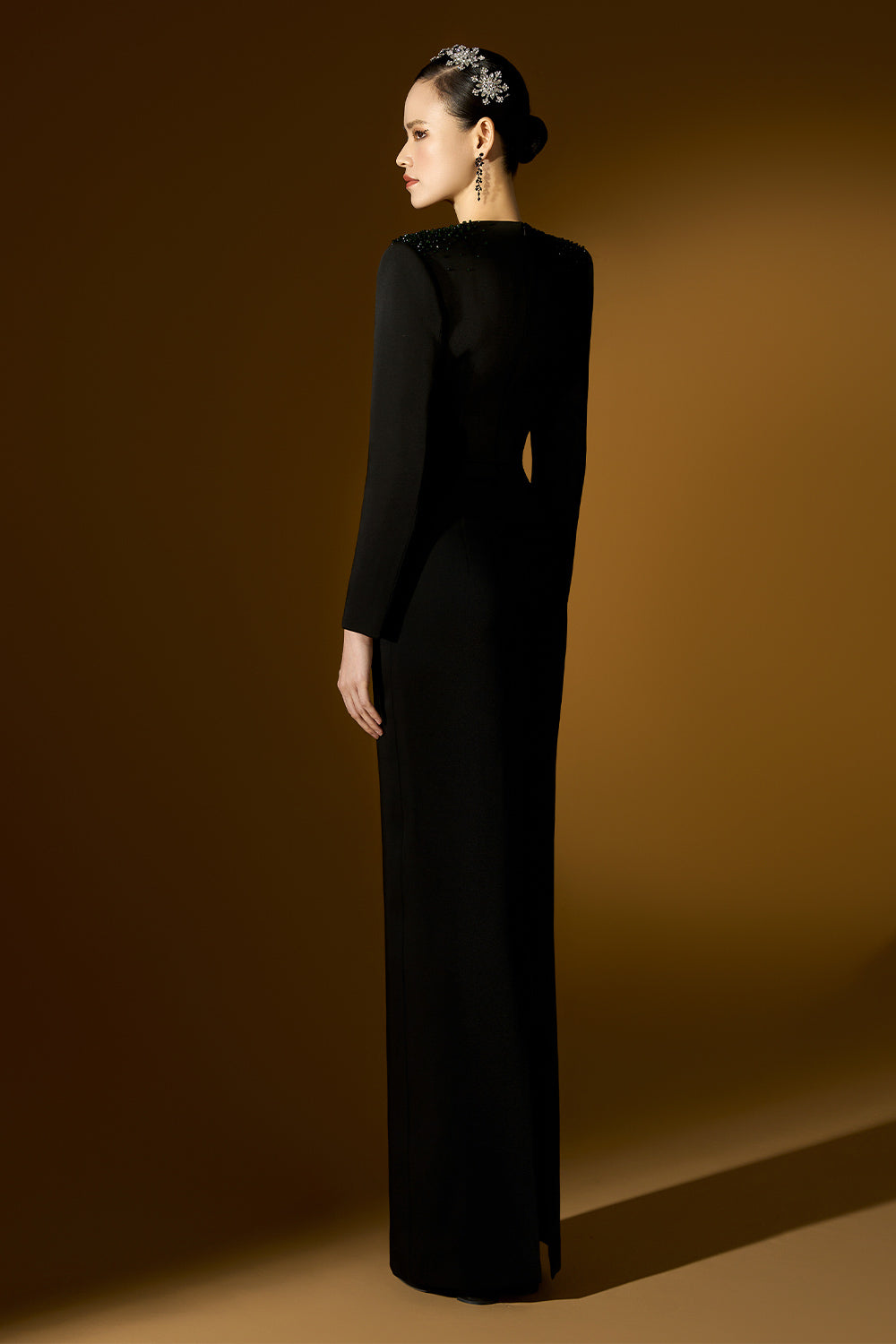 Special Features: Gradient effect with crystal on shoulder and waist, Square shoulder, Deep V-neck line, Slit back