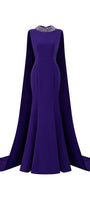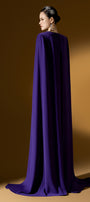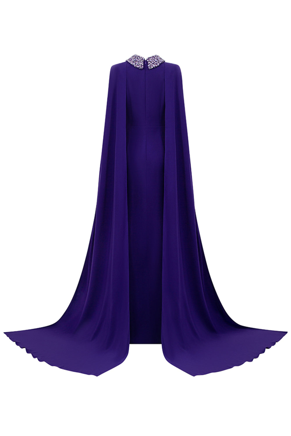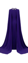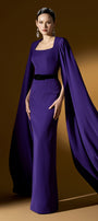 Marceline Sheath Cape Sleeved Crepe Floor Length Dress