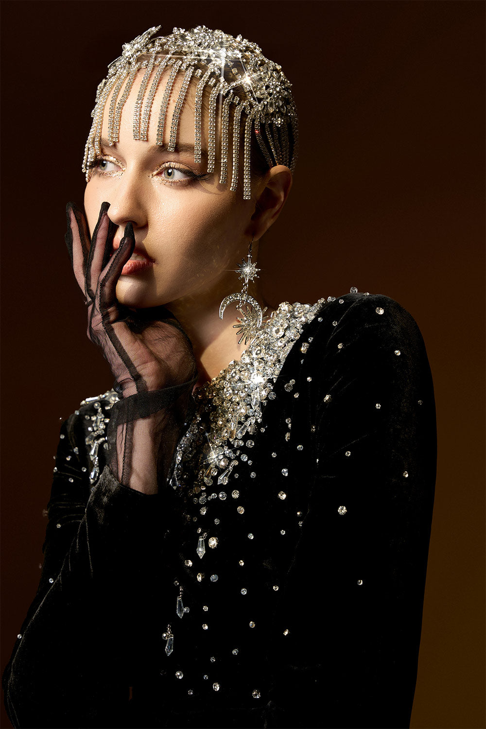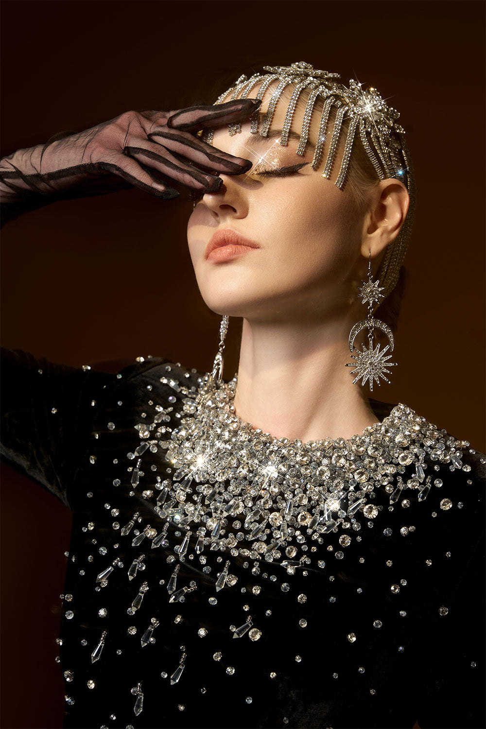 Attached crystals with gradient effect on the neck, Square shoulder