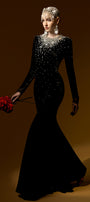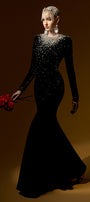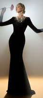 Enhance your inner mermaid with our dress. The mermaid design and glittering stone accents will make you feel like a true sea queen. The luxurious velvet material adds a touch of elegance, perfect for any formal occasion. Dive into style with Miriam.