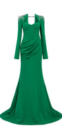 Jade Trumpet Square Shoulder Polyester Spandex Floor Length Dress