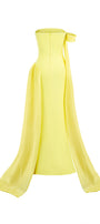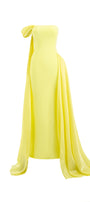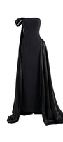 The dress expertly blends contemporary design with comfort. Its asymmetric neckline creates a striking visual appeal, while the off-shoulder cut adds a sophisticated edge. Crafted from a cotton-spandex blend, the dress offers both stretch and breathability, ensuring a flattering fit throughout the day or evening. The floor-length silhouette enhances its elegant and refined character, making it ideal for formal occasions.
