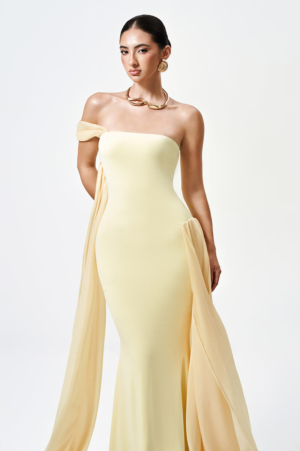 Aura Asymmetric Off-Shoulder Cotton Spandex Floor Length Dress