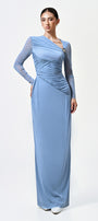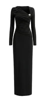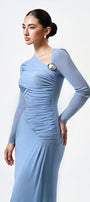 Special Features: Asymmetric gathered detail, Diagonal neck with silver brooch, Side zipper, Elastic