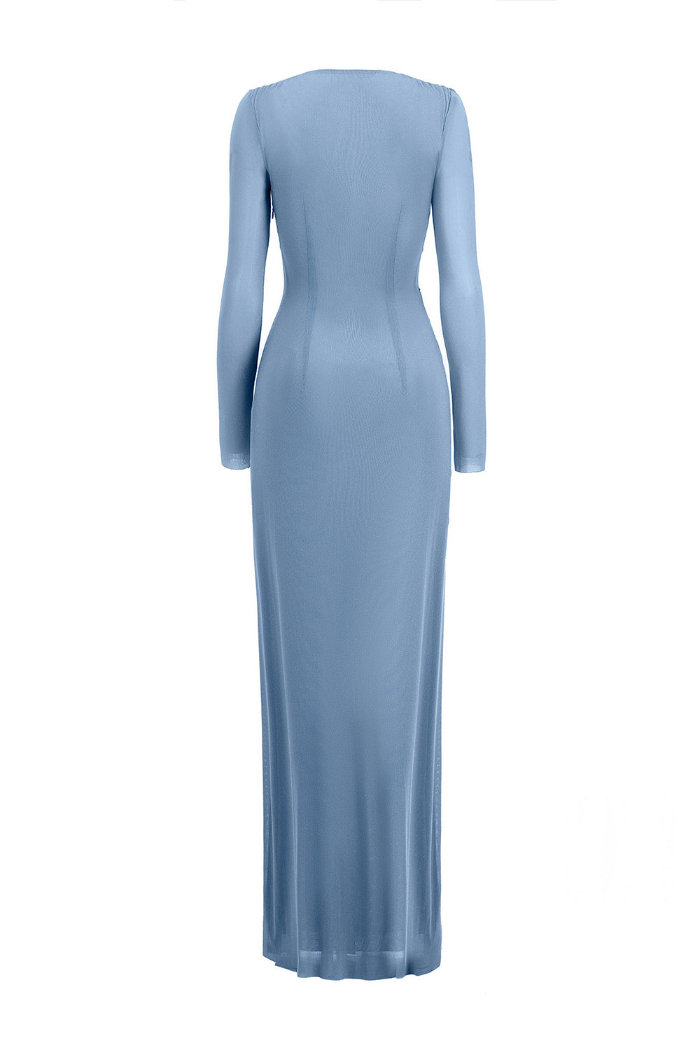 The dress offers a sophisticated silhouette with expert detailing. Crafted from elastic cotton, it provides a comfortable, form-fitting wear that adapts to your movements. The gathered design adds subtle texture and dimension, enhancing the dress’s sleek sheath shape. Perfect for refined occasions, this maxi dress balances elegance and ease with precision tailoring.