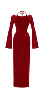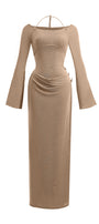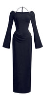 Cassia A-line Halter Neck Elastic Cotton Floor Length Dress