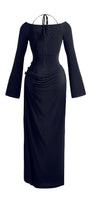 Elastic, Open shoulder, Bowtie neck at the back, Two-layer chest, Curved creases on the waist