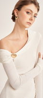 Elastic, Sarong on one side, Two-layer gathered fabric along neckline