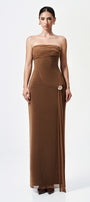 The dress combines refined tailoring with comfort. Crafted from elastic cotton, it offers a flattering fit that moves with you. The extended flap detail adds a sophisticated layer, enhancing the dress’s sleek silhouette. Ideal for occasions requiring understated elegance, this maxi dress balances structure and ease for a polished, expert look.