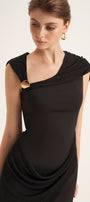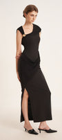 Discover the perfect combination of style and comfort with our dress. With a flattering asymmetrical neckline and ankle-length design, this dress is made of a cotton spandex blend for ultimate comfort. Elevate your wardrobe with this versatile and chic dress.