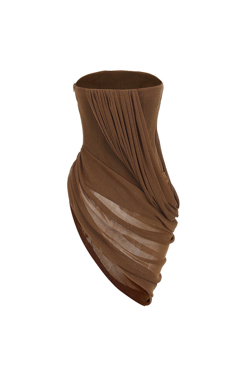 Note: The flap at the bottom just attached on the left side and dropped on the other side. This sheer overlay should be worn over the hip.