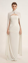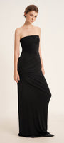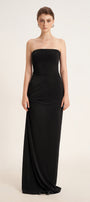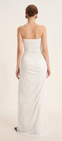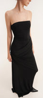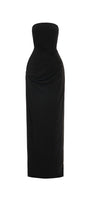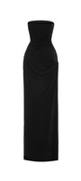 This dress boasts a classic straight across neckline and an elegant floor-length design. Made from comfortable elastic cotton, the dress provides a comfortable and flattering fit for any occasion. Its sheath silhouette accentuates your curves, giving you a sophisticated and timeless look. Perfect for formal events, weddings, or a night out.