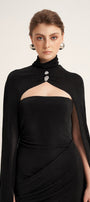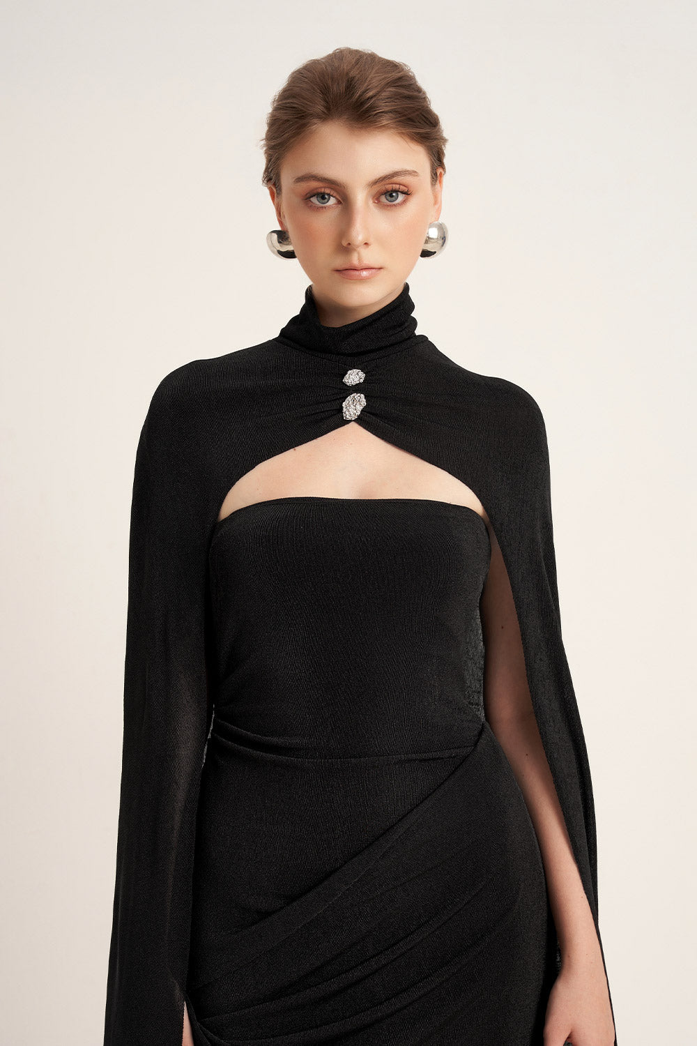 Pansy Straight Turtle Neck Elastic Cotton Floor Length Cape