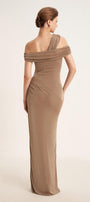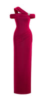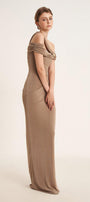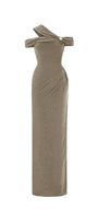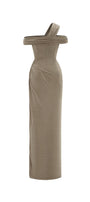 Plumeria Sheath Cold Shoulder Sleeved Elastic Cotton Floor Length Dress