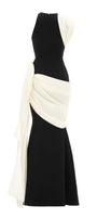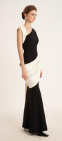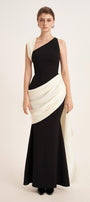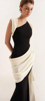 Poppy Trumpet Asymmetric Neck Elastic Cotton Floor Length Dress