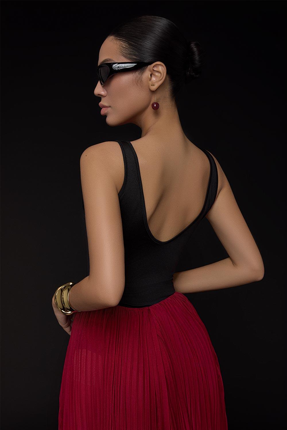 Octo Pleated Draped Chiffon Floor Length Skirt