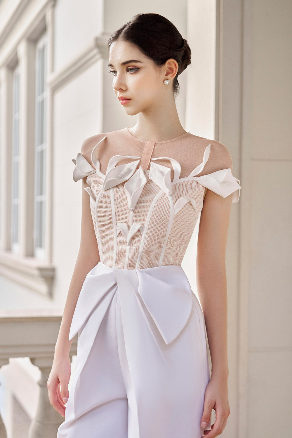 Introducing our top. Made with premium mesh fabric, this top is designed to accentuate your curves while giving off an alluring and elegant look. With its illusion neck and bodycon fit, it's the perfect addition to any wardrobe.