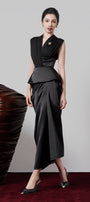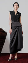 Non-elastic, Deep V-neck, Gathered on the front body, Cut-out at the waist, Teardrop clasp on the side