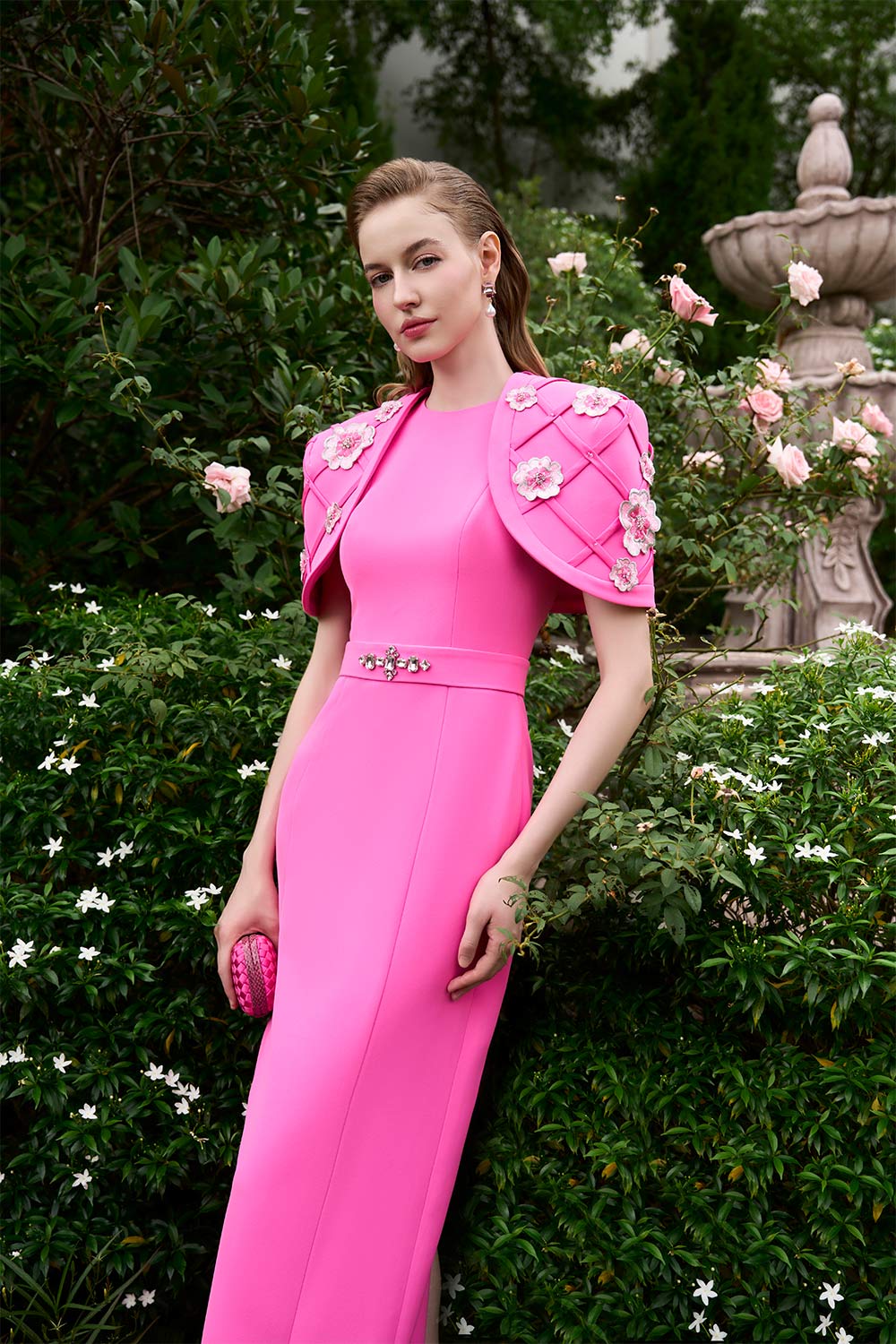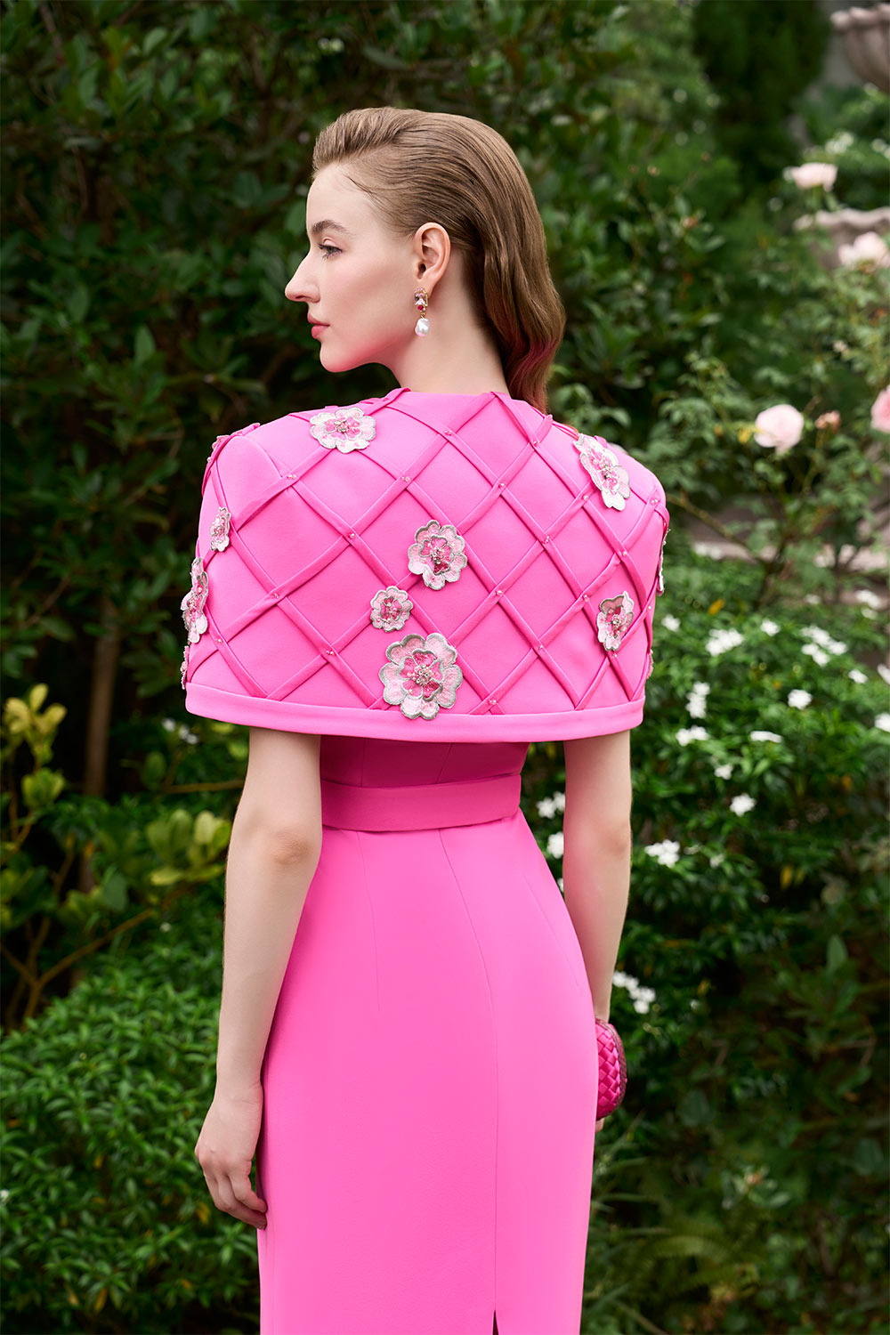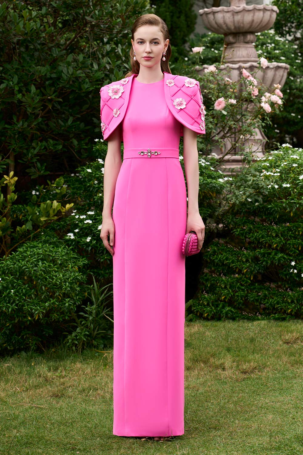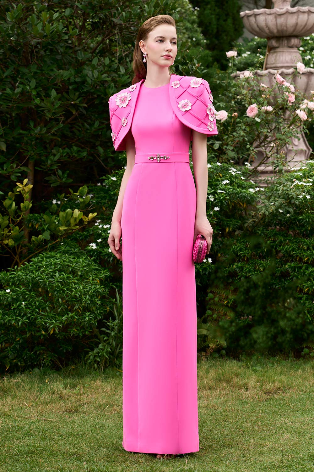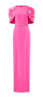 Kaydence Sheath Cape Shoulder Silk Crepe Floor Length Set