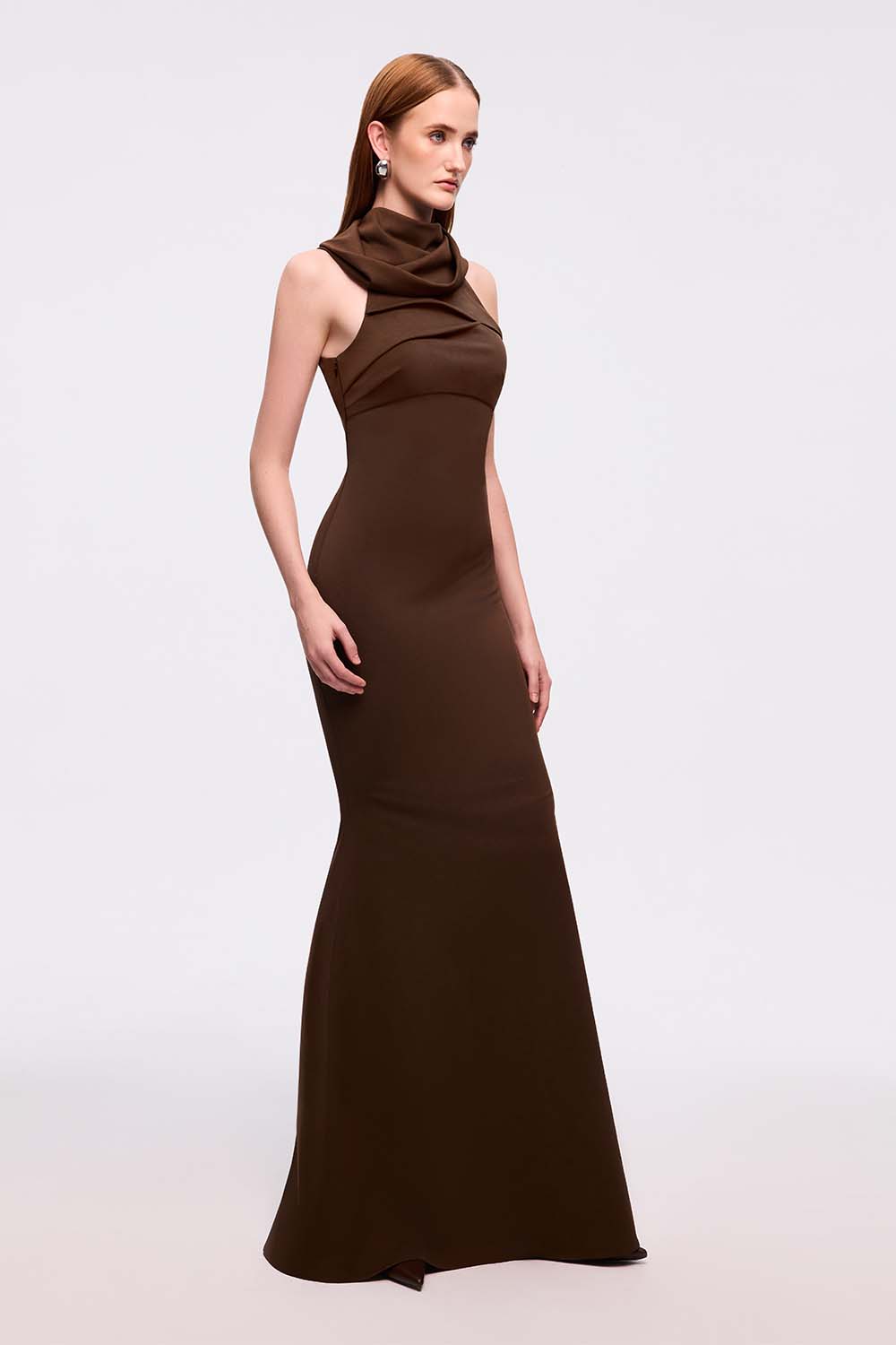 The standout feature of this dress is its asymmetrical draping. Positioned artfully at the high neckline, this drape adds a touch of artistic flair, offering a sophisticated and modest look that can be both formal and chic, ideal for both office environments and evening outings. The design comes with a scarf that can be put together for an elegant style, or just used separately for warmth.