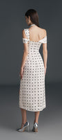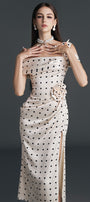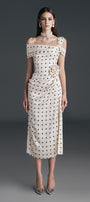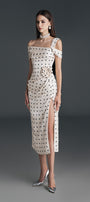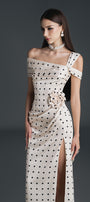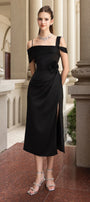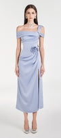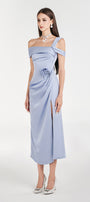 Dinna Slit Asymmetric Neck Silk Calf Length Dress