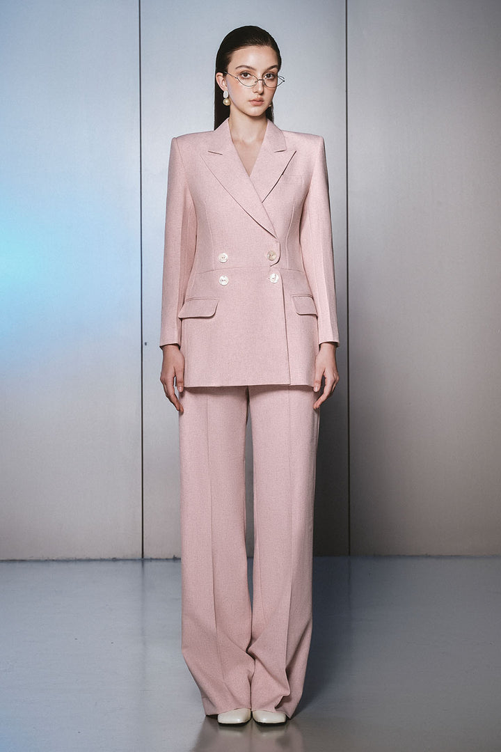 | Special Features | Peak lapels, Double-breasted with curve hem, Dart lines, Flap pockets, Square shoulder, Button on the cuff |