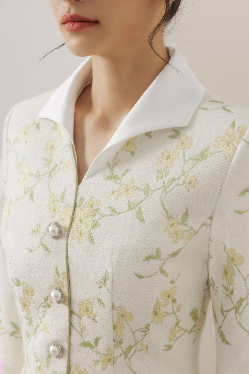 Silk collar, Pearl buttons combined with slanted wrist straps
