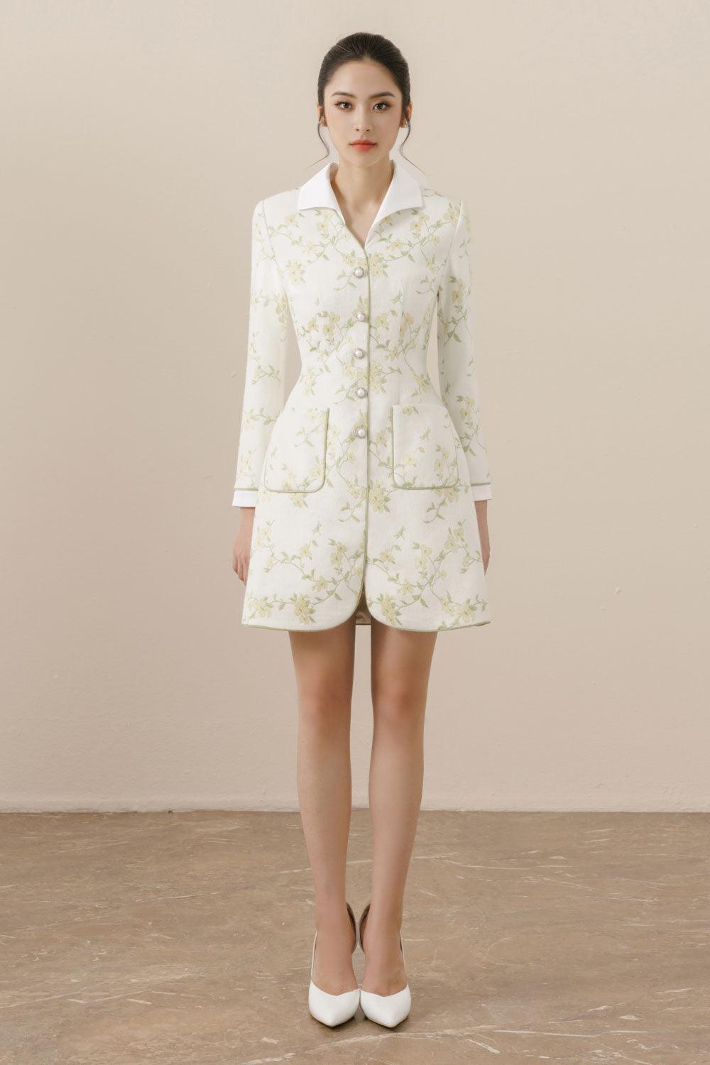 Introducing the dress - a luxurious addition to your wardrobe. With its A-line silhouette and patch pockets, this dress exudes sophistication and elegance. Crafted from high-quality tweed, it offers both comfort and style, making it perfect for any occasion. Elevate your look and stand out with this exclusive piece.