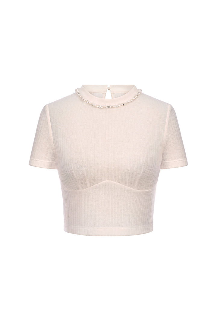 The top expertly blends luxurious wool with delicate bead embellishments for a sophisticated, form-fitting silhouette. Designed to contour the body, this crop top offers both warmth and style, making it an ideal choice for elevated layering or standout standalone wear. Its refined craftsmanship ensures a polished look suitable for discerning wardrobes.
