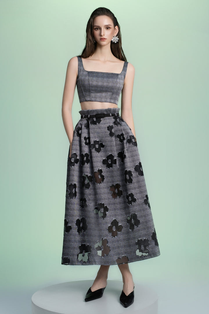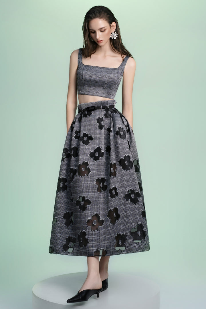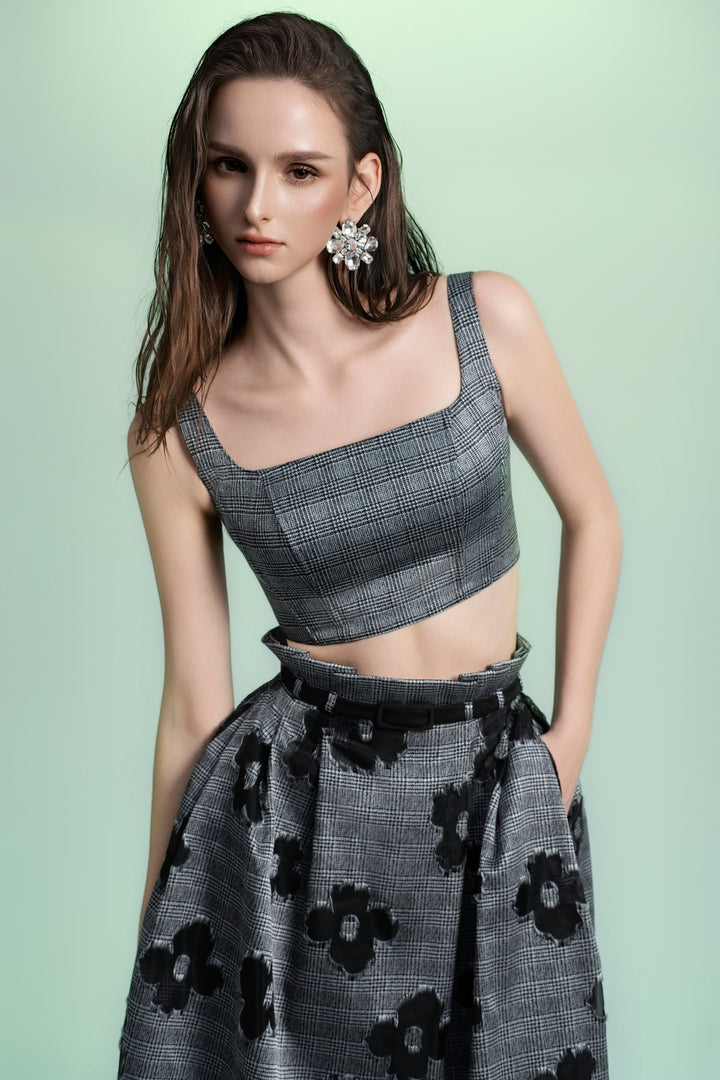 The top features a structured silhouette crafted from lustrous taffeta fabric, offering both shape and sophistication. Its corset design provides tailored support and a flattering fit, making it a versatile piece that elevates any ensemble with a polished, contemporary edge.