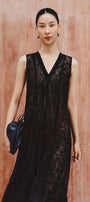 Special Features: Velvet lace patchwork technique, Black ribbed lines along the dress, Include dress lining , See-through design, Long bow tie at the back