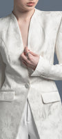 Expertly crafted for a polished look, the blazer adds a touch of sophistication to any outfit. With its structured lapelless design, this blazer offers a modern twist on a classic style. Elevate your wardrobe with this must-have piece.
