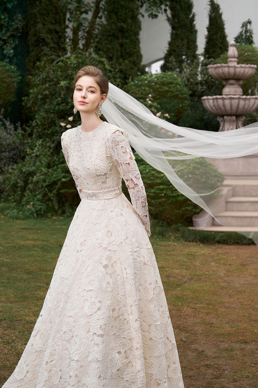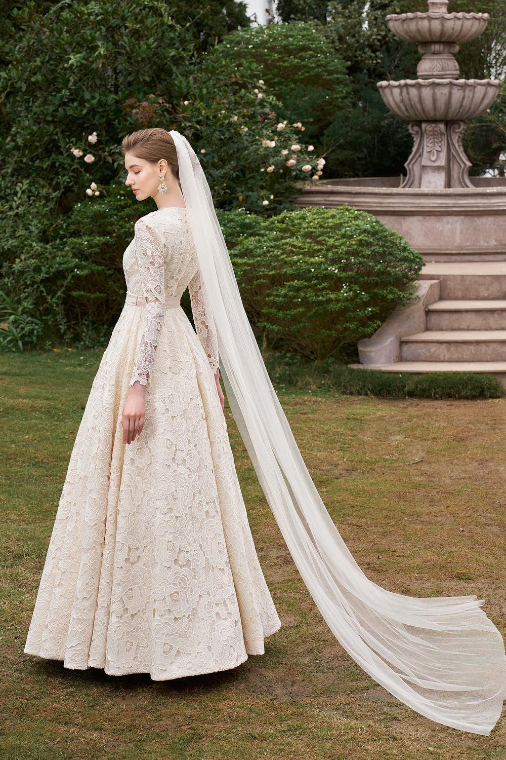 Cisneros Ball Gown Round Neck Silk Lace Floor Length Dress