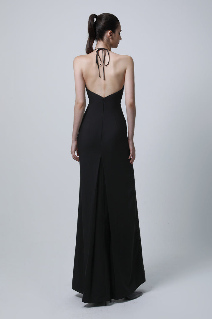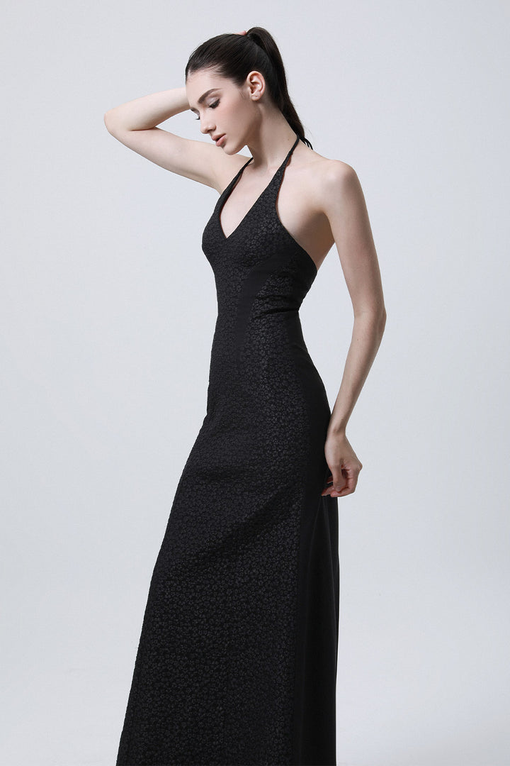 | Special Features | Halter neck with deep V-line, High draped at the back, Floral pattern, Backless, Fitted waist |