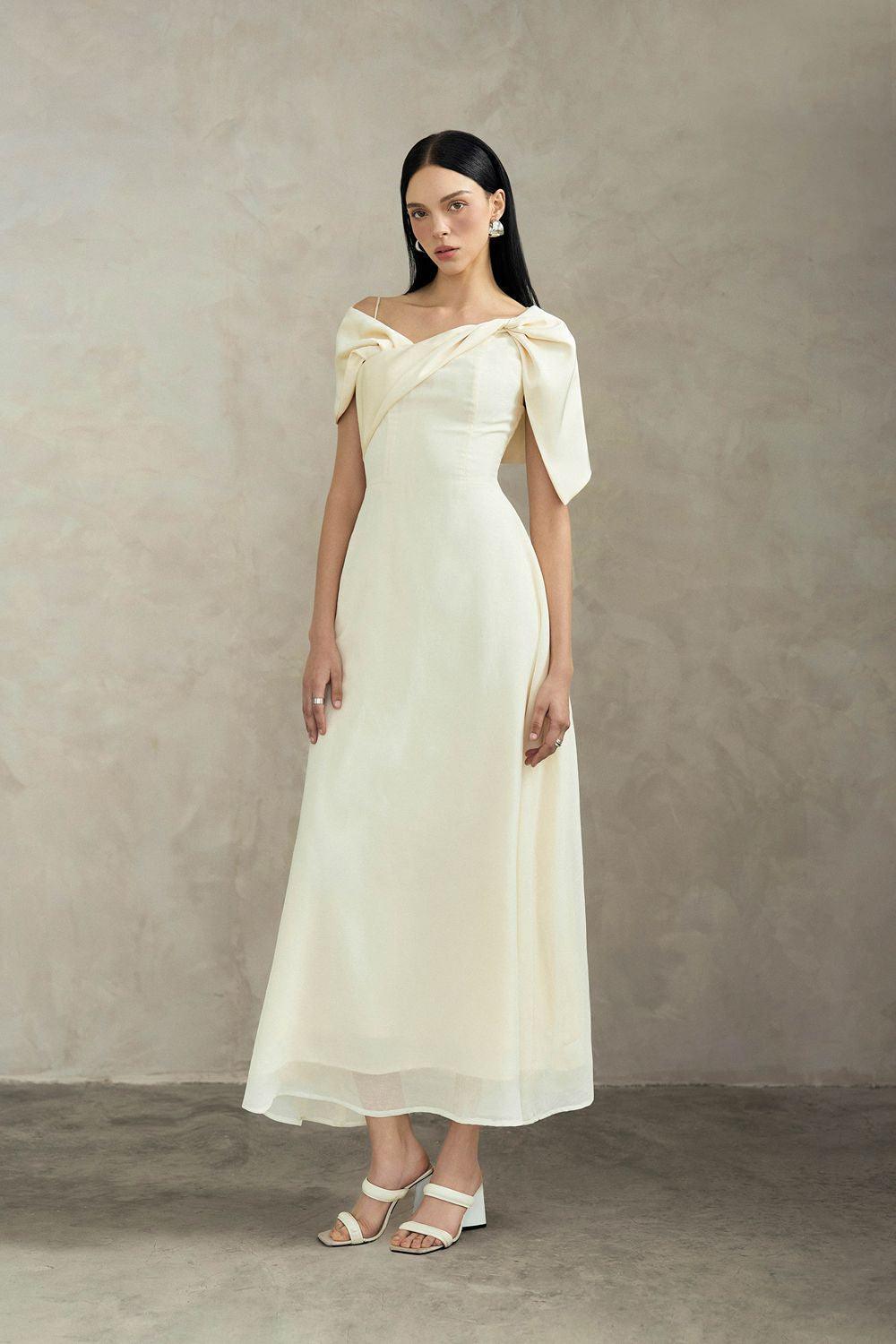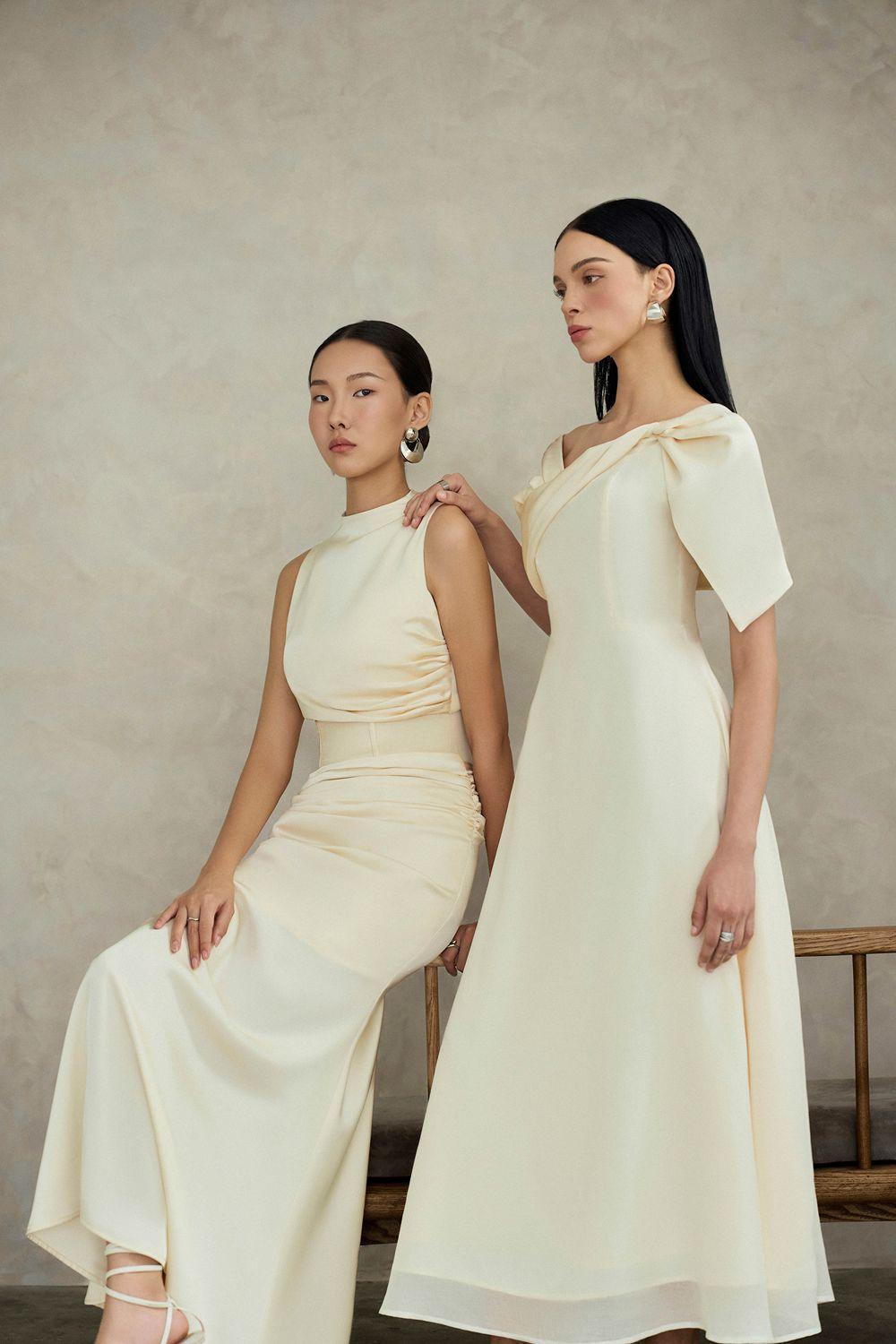Indulge in pure luxury with our dress. This dress combines the classic A-line silhouette with a modern twisted silk fabric, creating a unique and elegant look. Its ankle length design adds an extra touch of sophistication. Elevate your wardrobe and elegance with this dress.