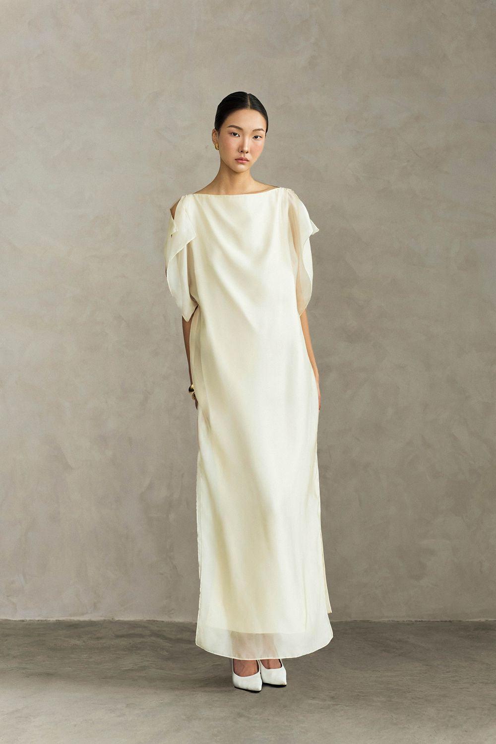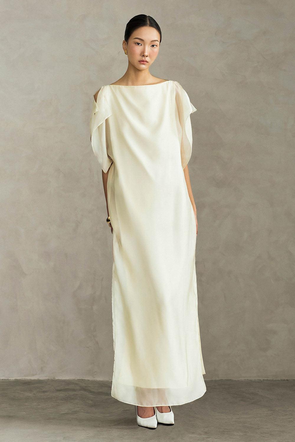 Farida Straight Side Slit Silk Ankle Length Dress