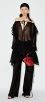 Hoya Straight Wide Leg Chiffon Floor Length Pants