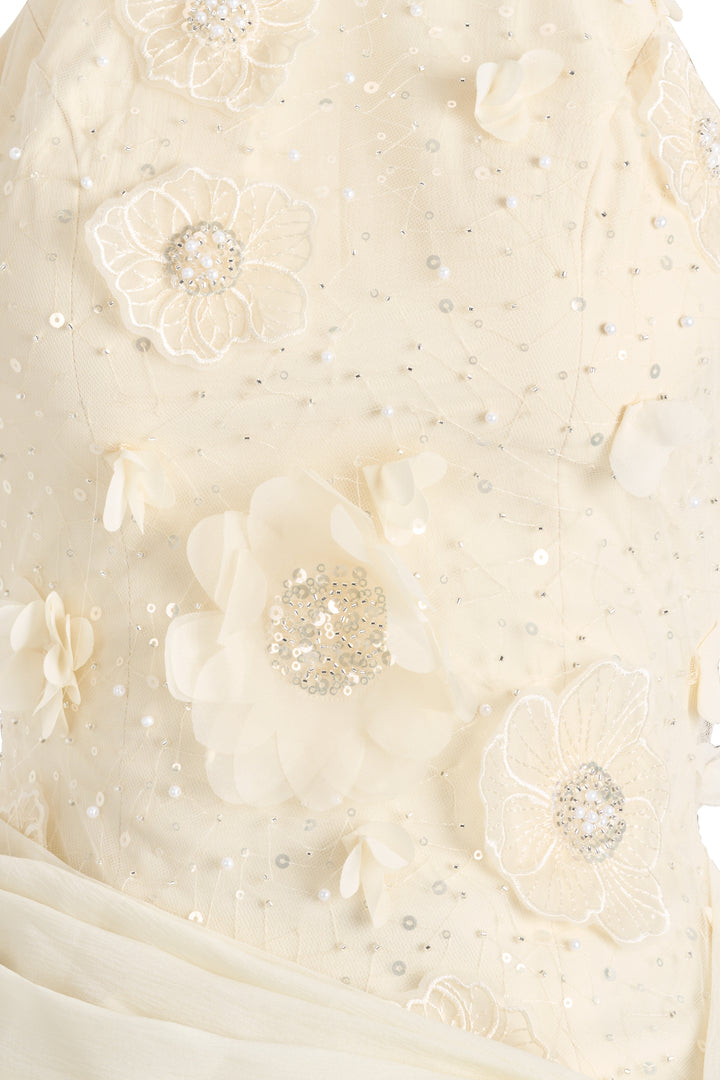| Special Features | Knotted detail with long flap on the side, Floral applique with bead along the dress |