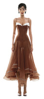 Expertly crafted from delicate organza, this A-line midi dress features a flattering sweetheart neckline, draped sewing details, and elegant ruffle embellishments. Ideal for weddings, garden parties, or any sophisticated occasion.