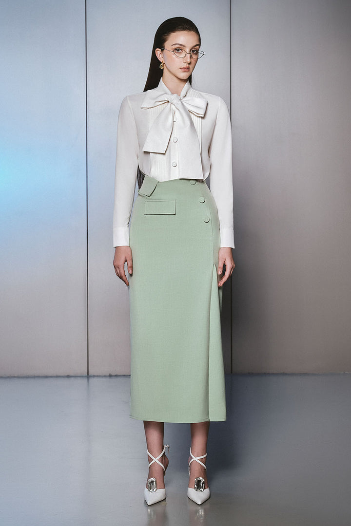 | Special Features | Buttons row on the side, Folde flap on the waist, Faux flap pockets, Side slit |