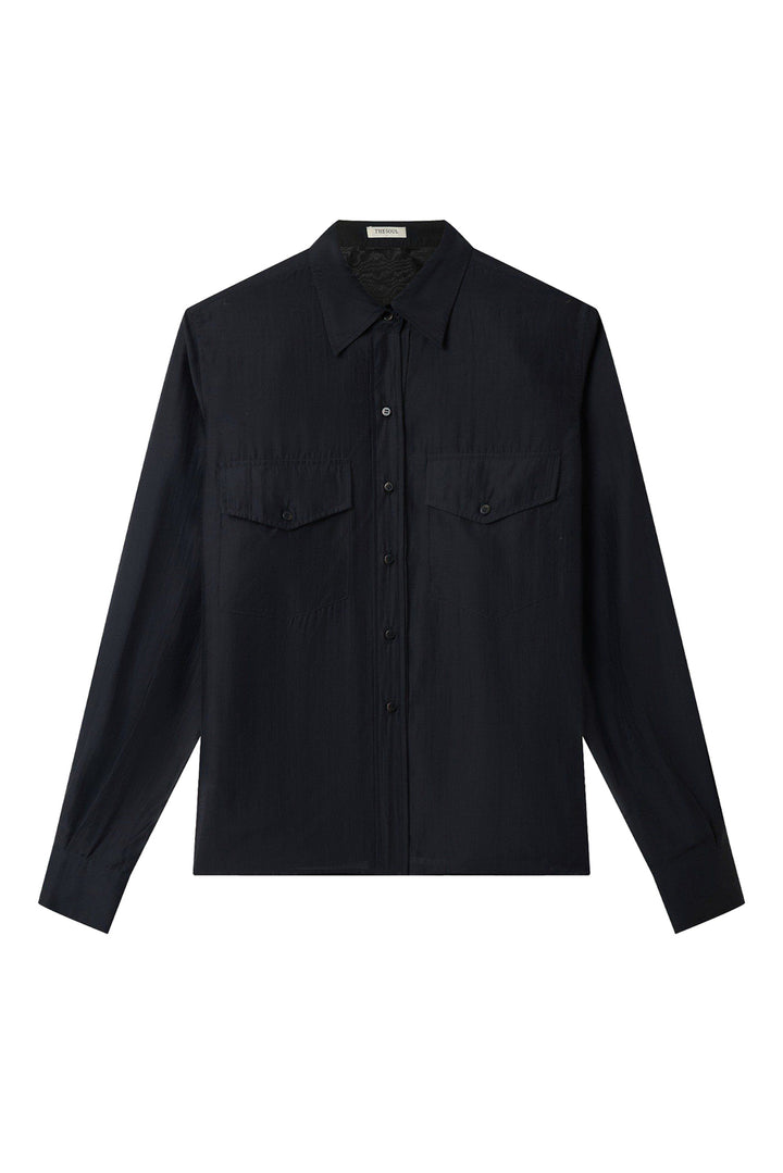 This shirt features a clean, straight silhouette enhanced by cuffed sleeves for a polished look. Designed with practical flap pockets, it offers convenient storage while maintaining a sleek, professional appearance. Crafted from durable polyester, it ensures lasting comfort and easy care, making it an excellent choice for workwear or refined casual settings.