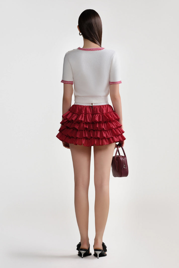 Made with a soft and breathable rayon blend, this top offers comfort and style. With its cropped design and jewel neckline, it is perfect for any occasion. Upgrade your wardrobe with this versatile and trendy top.