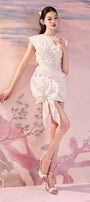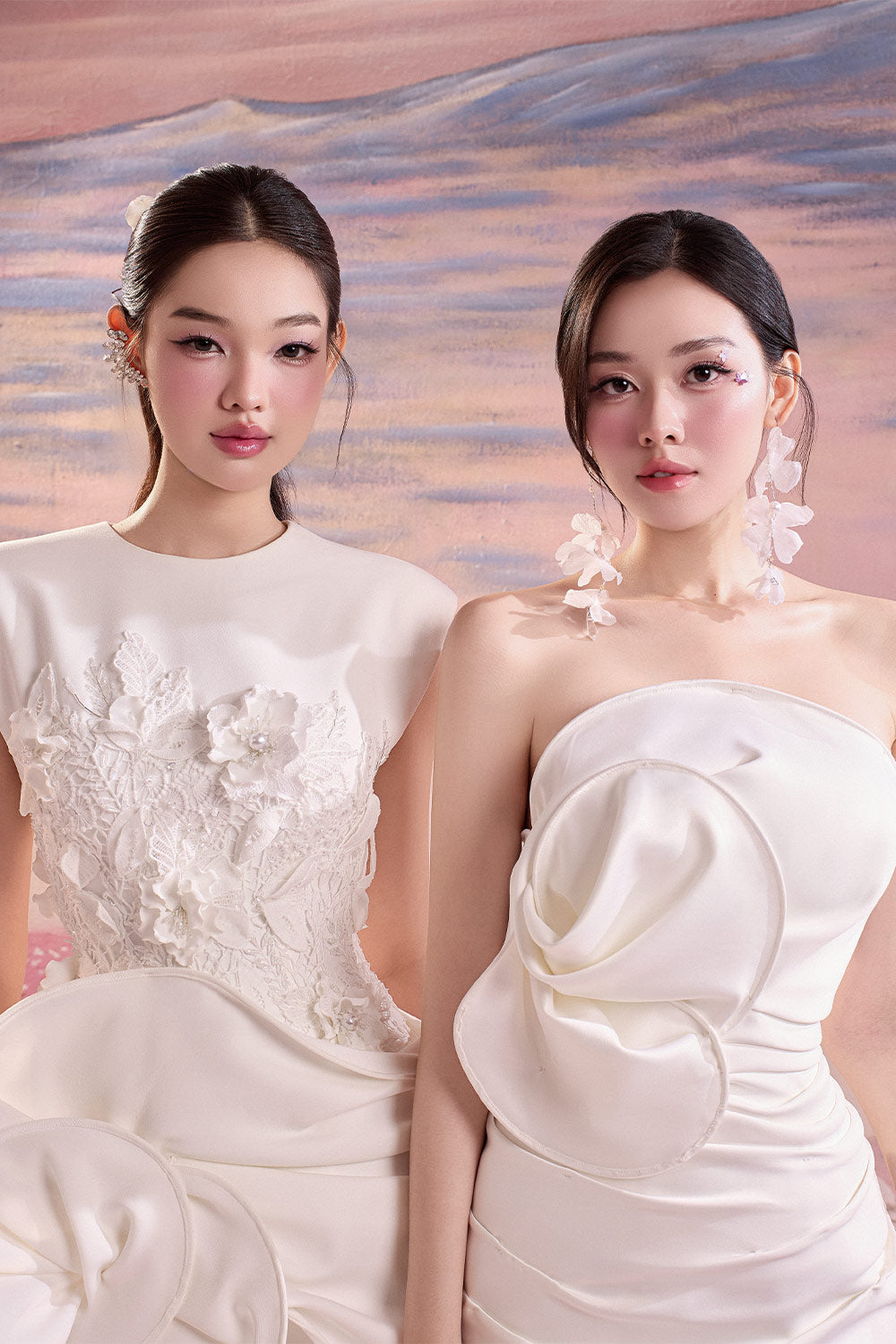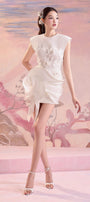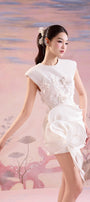 Special Features: Embellished 3D floral and leaves on the bodies, Draped floral as 3D petals design, Long ribbon the the side, Padded shoulder
