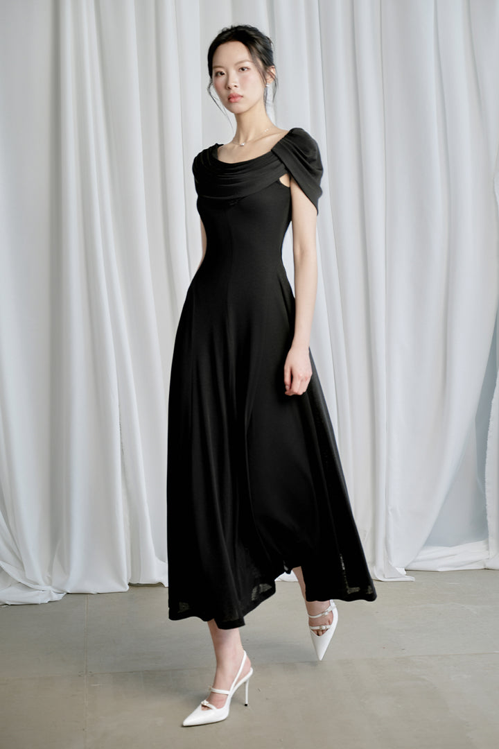 | Special Features | Asymmetric draped shoulder, Draped boat neck, Dart lines on the waist |